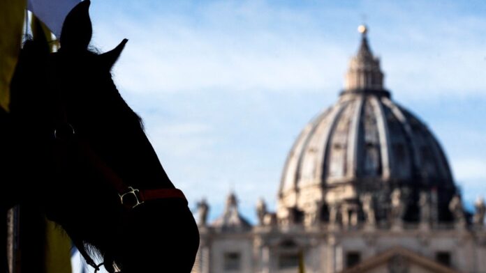ROMA (Public Policy) – Chi per un attimo, mercoledì mattina, ha pensato: oddio sono arrivati i cosacchi, ecco i loro cavalli abbeverarsi a San Pietro, si è dovuto presto ricredere: non erano cavalli del Don ma “agricoli italiani” e “tolfetani”, insieme ad asini, capre, pecore sarde e mucche marchigiane. Non erano lì per l’Angelus (in quel caso si ritrovano la domenica) ma portati dalla Coldiretti e dall’Associazione italiana allevatori – chissà se con i bus stile Primo maggio – per celebrare Sant’Antonio Abate, patrono degli animali.